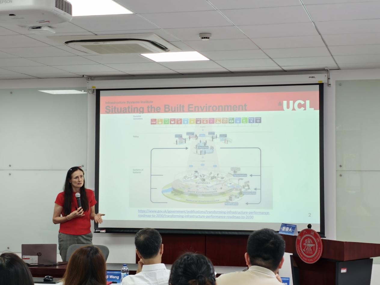 开幕式后,由上海交通大学应急管理学院副院长梁昕主持,举办了学术工作坊,工作坊分为特邀嘉宾报告和青年学者报告两个环节。在特邀报告环节,伦敦大学学院测绘工程系Liz Varga教授、上海交通大学船舶海洋与建筑工程学院副院长杨健教授、国际与公共事务学院卢婷婷副教授、上海大学管理学院陶丽副教授,分别围绕基础设施韧性、建筑性能评估与社会基础设施韧性等主题,分享了韧性城市治理的前沿研究成果与创新思路。
